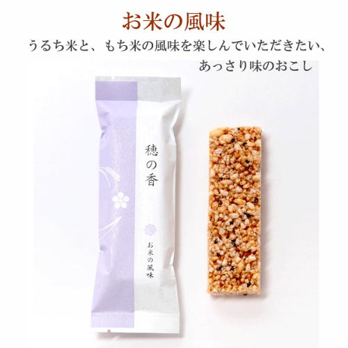 本製品である「穂の香」は固いと思われがちな粟おこしをやわらかく、食べやすい形にいたしました。